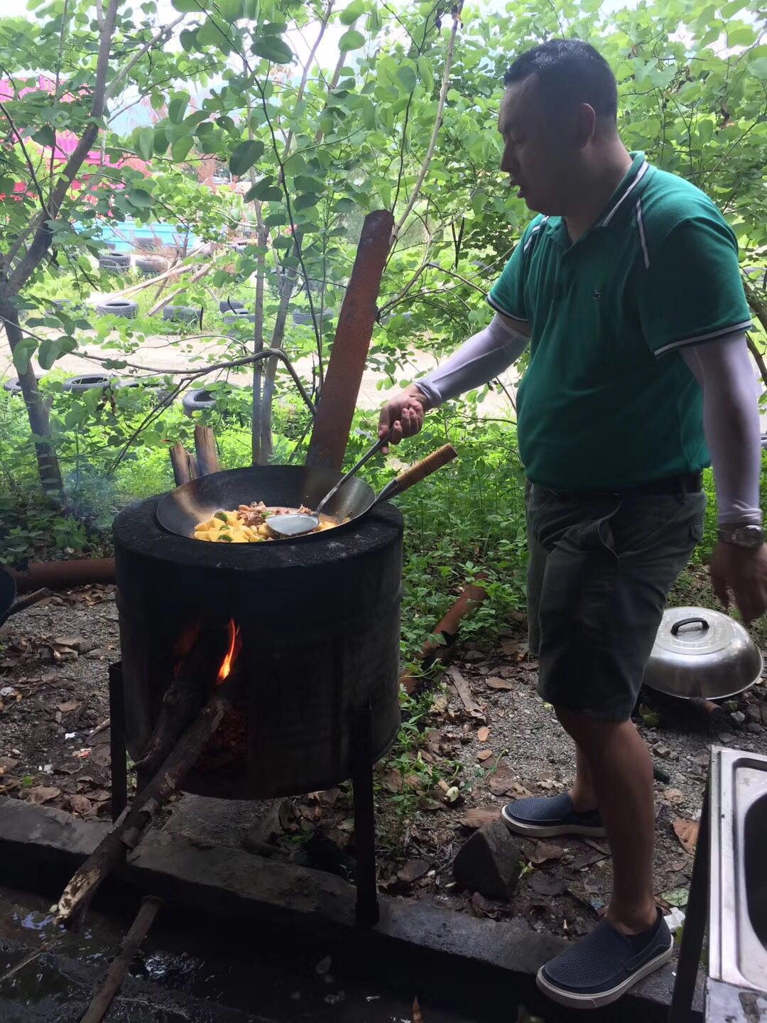 歡樂(lè)的騎行,想必大家也都餓了,那就開(kāi)始自行野炊吧。按照之前分好的小組,各自選好廚灶,準(zhǔn)備食材,開(kāi)始野炊。
